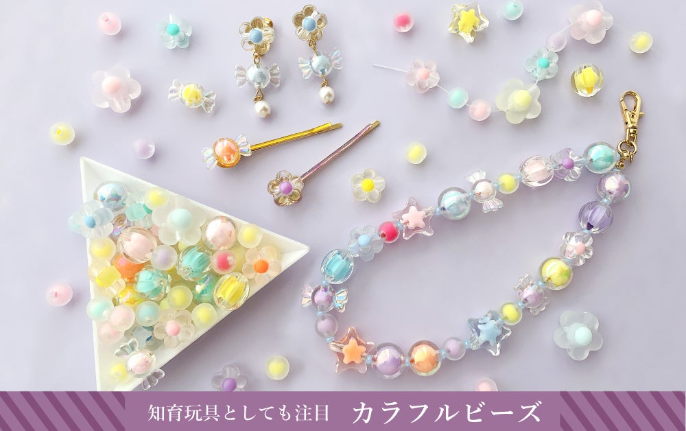 子どもだけでなく大人もつい手に取りたくなる、色鮮やかな新作ビーズが多数入荷