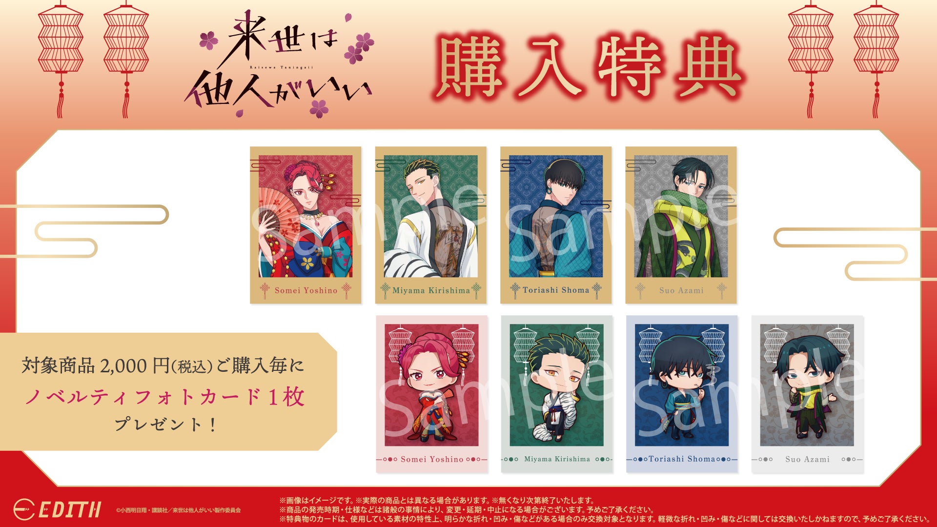 株式会社イーディス(本社:東京都豊島区、代表取締役:森俊平、以下イーディス)は、TVアニメ『来世は他人がいい』のオリジナルイラスト「四神」を使用した商品をアニメガ×ソフマップにて先行販売いたします。