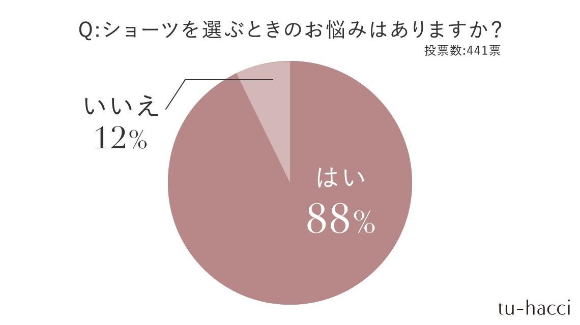 ショーツのお悩みに関するアンケートを、tu-hacci公式Instagramで実施。88%の方がショーツ選びで「悩んでいる」と回答しました。