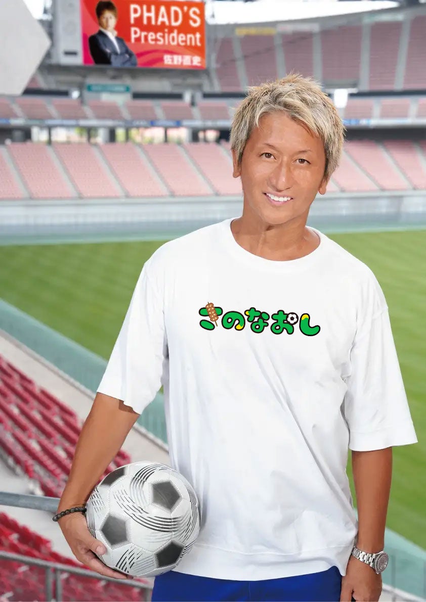 「さのなおしTシャツ」は、さのなおし本人がイベント事だけでなく日常的に着用しているアイテム。そんなさのなおしが着ている様子を見て、さのなおしTシャツが欲しい!とファンだけではなく、お客様やサッカー関係者、ファッズに関係する業者様など多くの方々より「非売品の憧れ」として語られてきました。