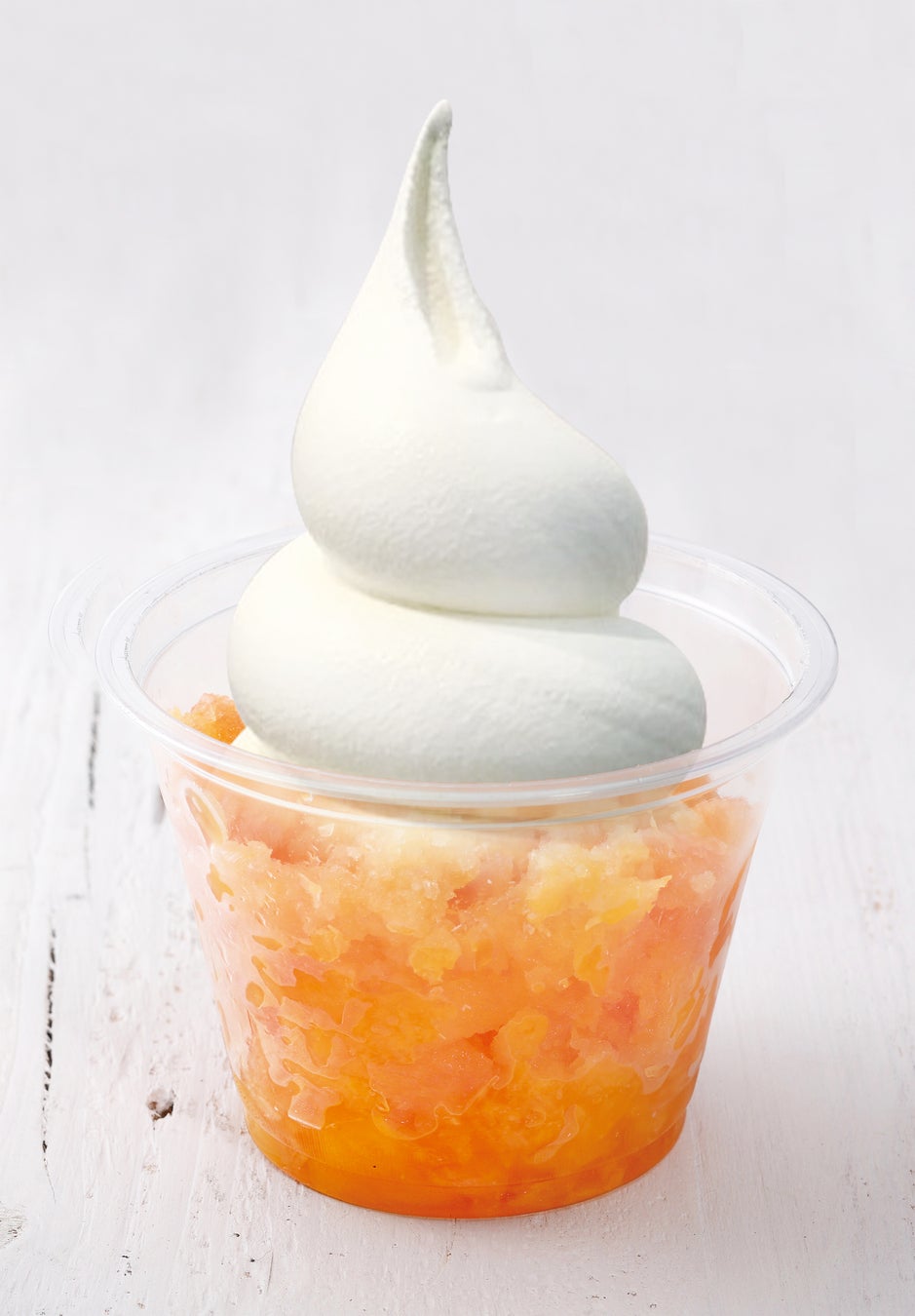 ひんやり凍らせたカラカラオレンジを細かく砕き、カルダモンがほのかに香るシロップをかけ、ミルキーなソフトクリームを乗せたフローズンです。さっぱりとした「カラカラオレンジ」の果実味をダイレクトに感じられるおすすめの冷たいデザートです。