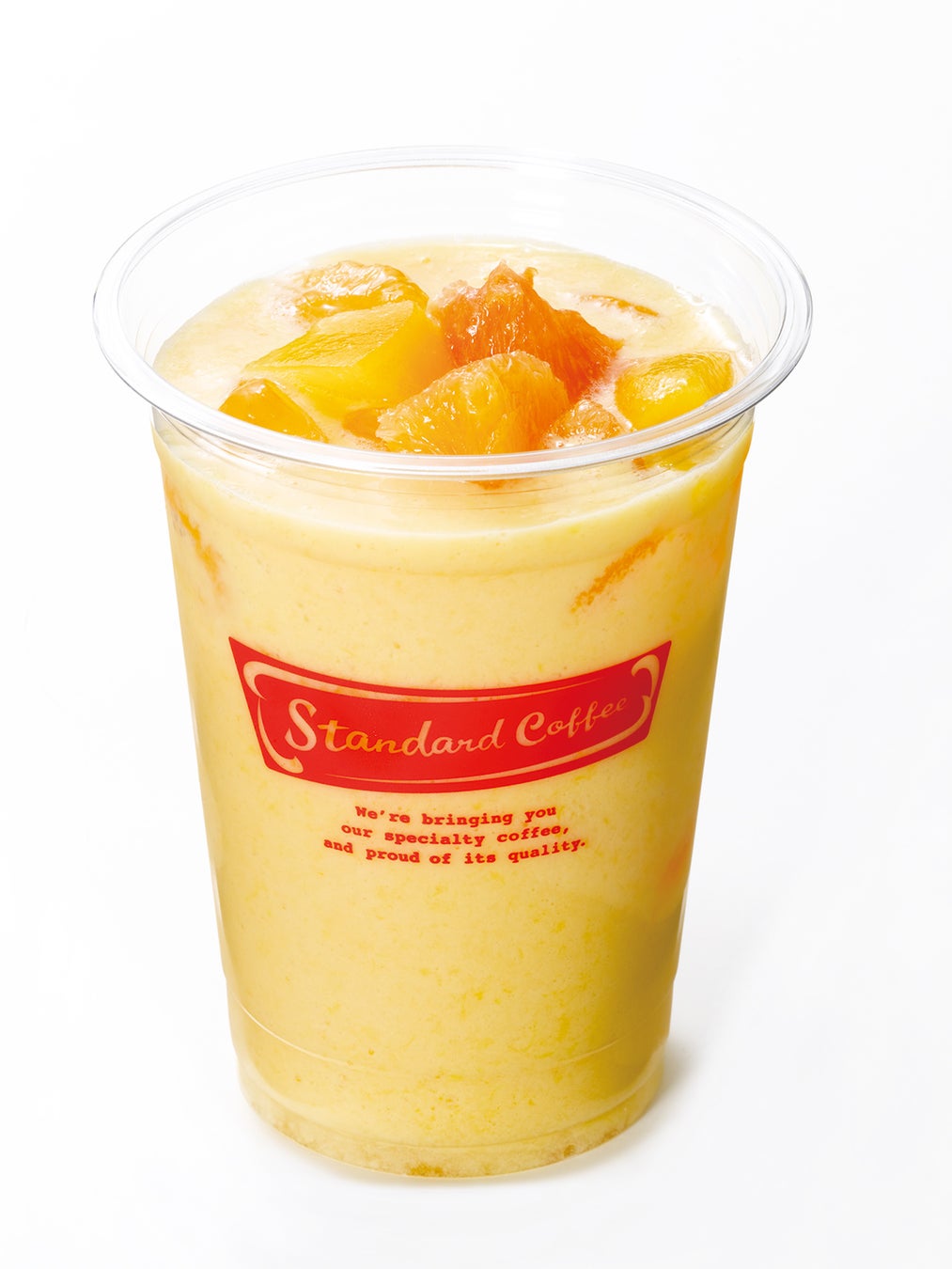 「カラカラオレンジ」は、ネーブルの一種で果肉はルビー色にも例えられる赤みが強いオレンジ色をしており、ほのかな酸味と豊かな甘味が特徴のジューシーな柑橘類です。スタンダードコーヒーでは「カラカラオレンジ」に黄桃を組み合わせ、スパイスの爽やかなアクセントをつけたアイスティやさっぱりとしたヨーグルトや豆乳を合わせたスムージーなど、暑い夏にこそ最も美味しく味わっていただけるフルーティーで清涼感のある冷たいドリンクをご用意しました。