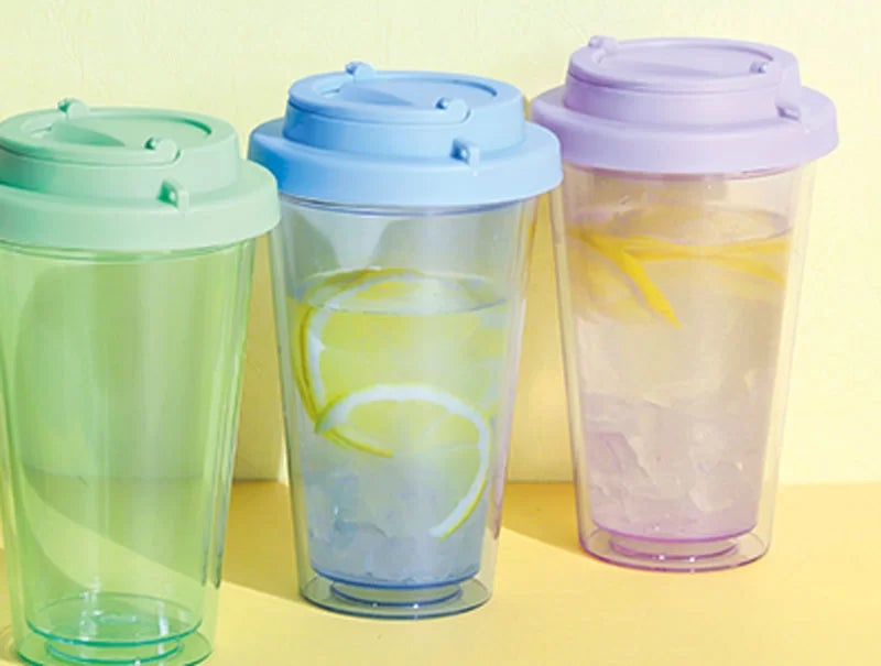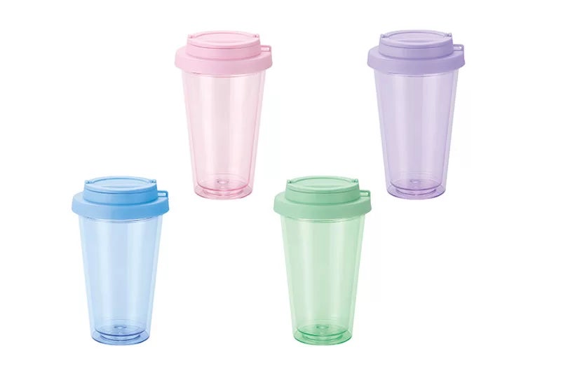 ▽フラップ付き二重構造クリアタンブラー