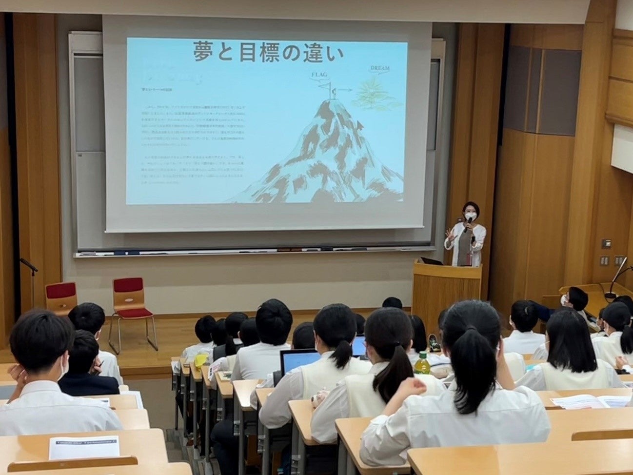 「夢は何ですか?と聞かれたときに職業を挙げる人が多いと思いますが、それは夢ではなく目標。夢というのはその職業に就いてから、どんな世界をつくりたいのかということ。山登りに例えるなら、到達したい山頂に立てる旗が目標であり、山頂で見たい光景や立ったときに見える世界が夢となるのです。皆さんもぜひこれを意識しながら、自分の夢のためにできることを考えてみてください」とお話されました。