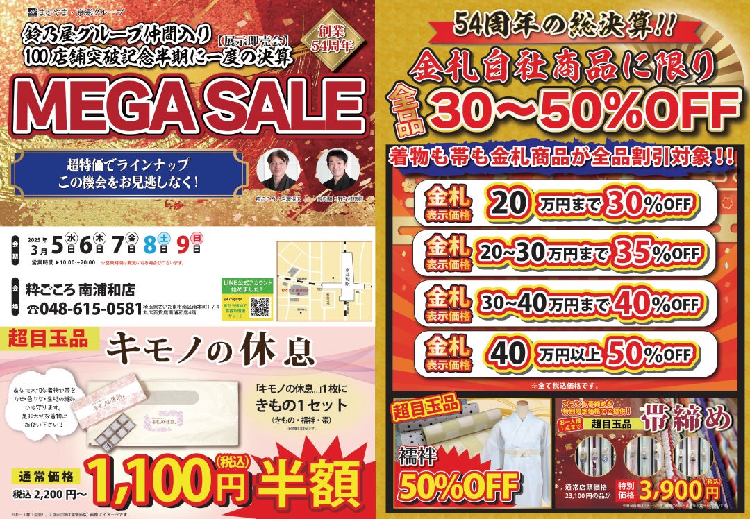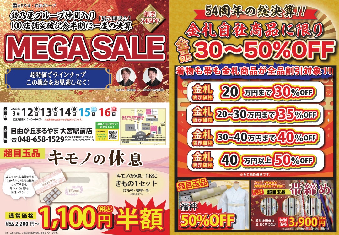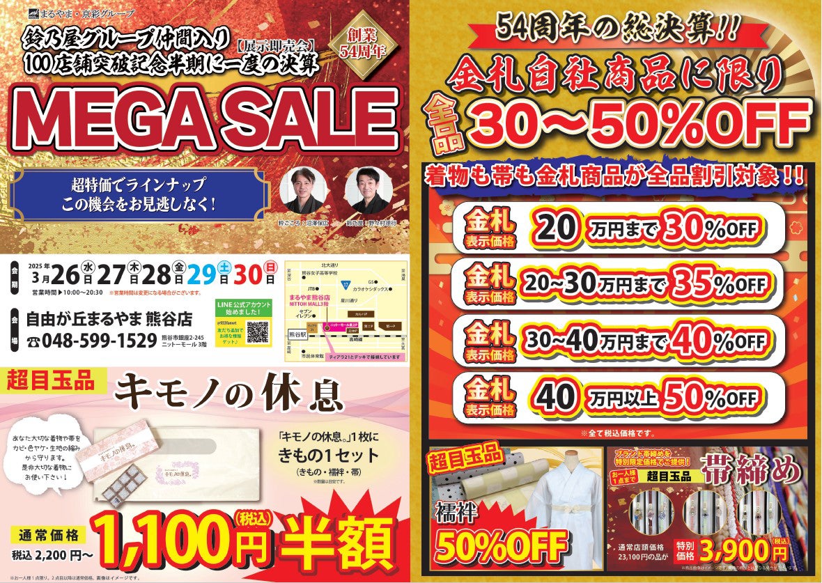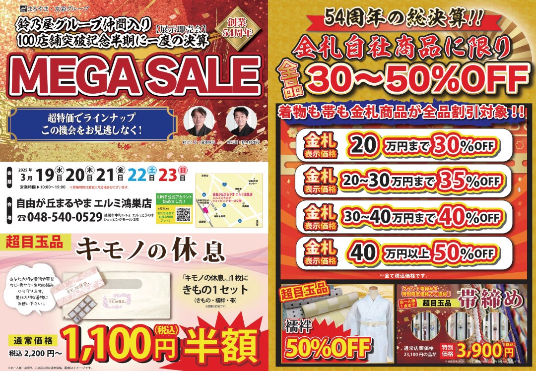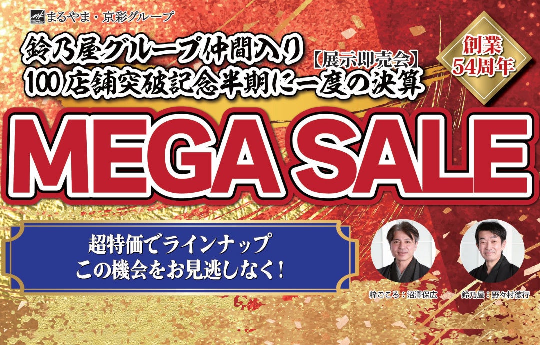 まるやま京彩グループ、100店舗突破記念、半期に一度の【展示販売会・MEGASALE】を「粋ごころ」4店舗で開催!