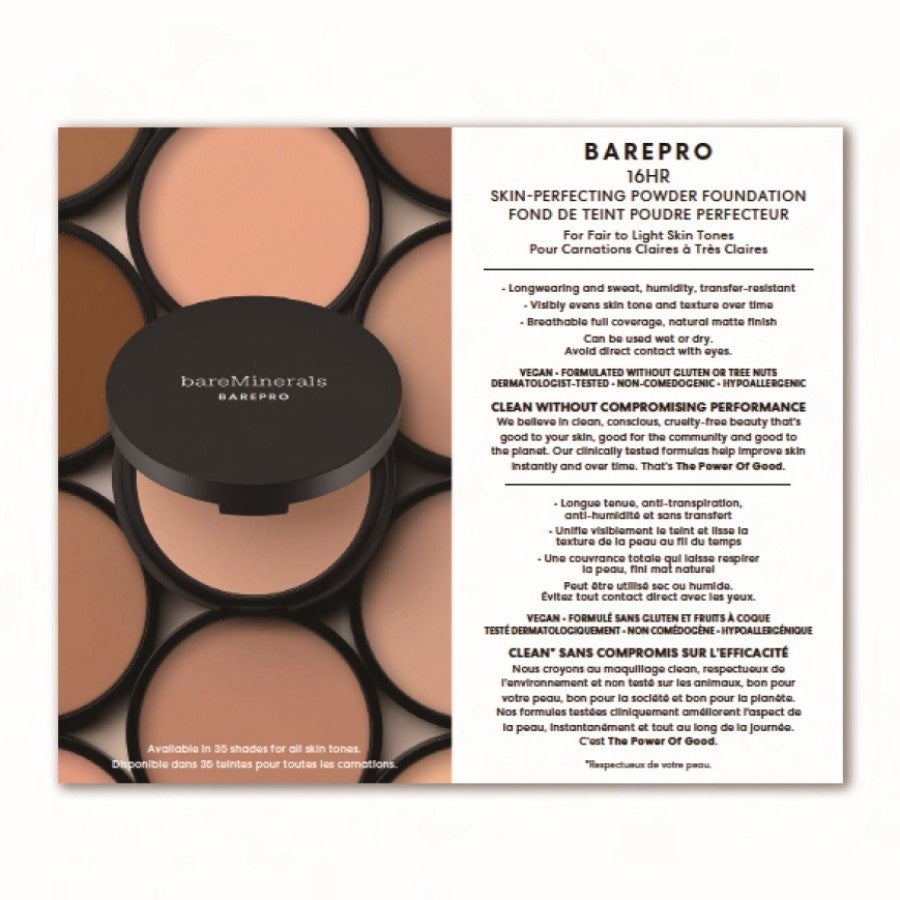 ベアミネラル製品を購入の方に、ベアプロ 16HR パウダーファンデーション 3色のカードサンプルをプレゼント!無くなり次第終了です。