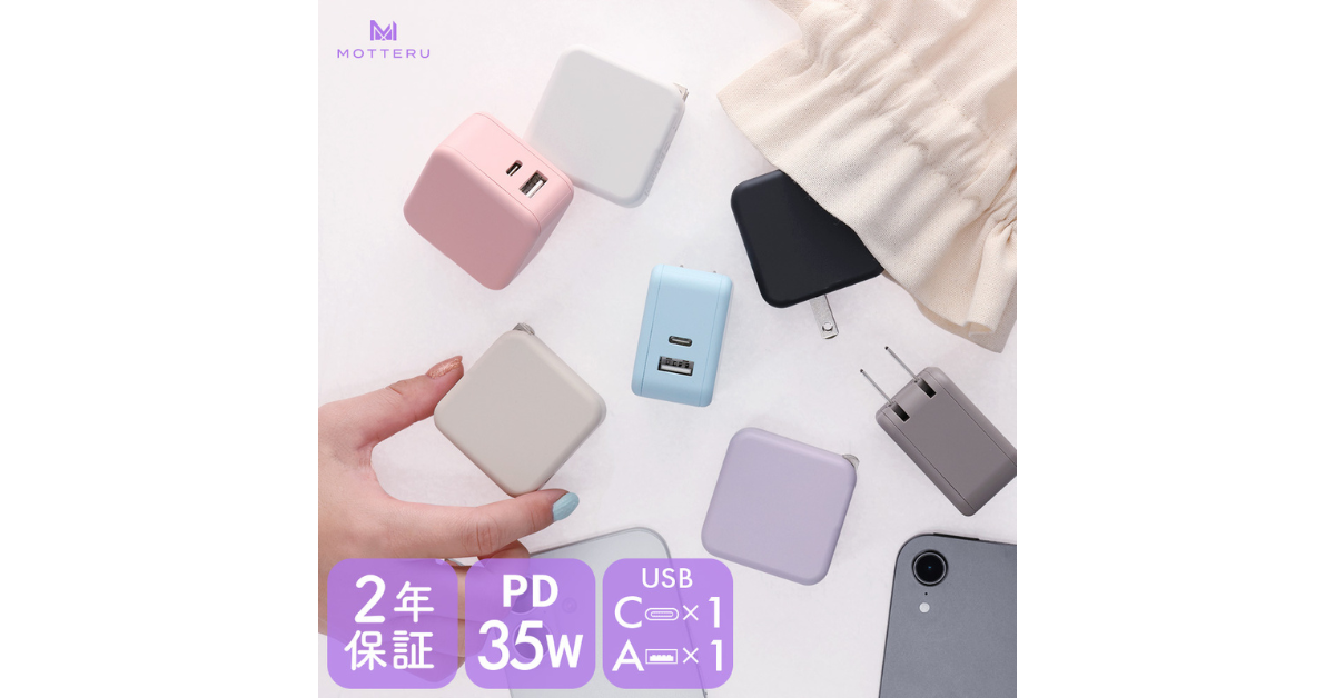 MOTTERU 旅行や帰省の必需品!急速充電可能な持ち運びしやすいAC充電器に新色が登場