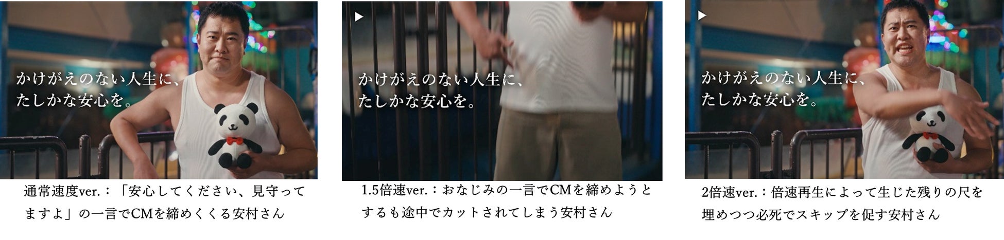 この結果を受けて本CMは、速度の異なる全5パターン(通常速度、1.25倍速、1.5倍速、1.75倍速、2倍速)に編集して損保ジャパン公式SNSを中心に公開します。