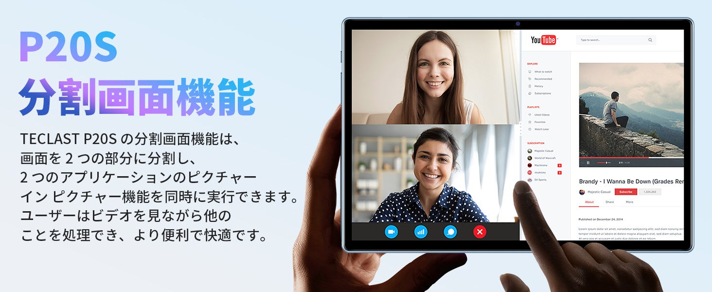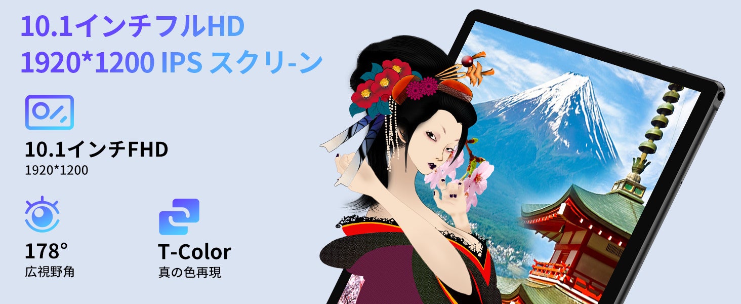 10.1インチのIPS広視野角ディスプレイを搭載し、1280x800のHD解像度により、複数の人が同時に動画を見ても素晴らしい視覚体験ができます。さらに16:10の黄金比の画面で、より快適な動画鑑賞体験が得られます。4GB RAMで、マルチタスクやアプリの切り替えもスムーズに。64GBのストレージスペースと1TBのMicro SDカードを追加して、データを整理することができます。