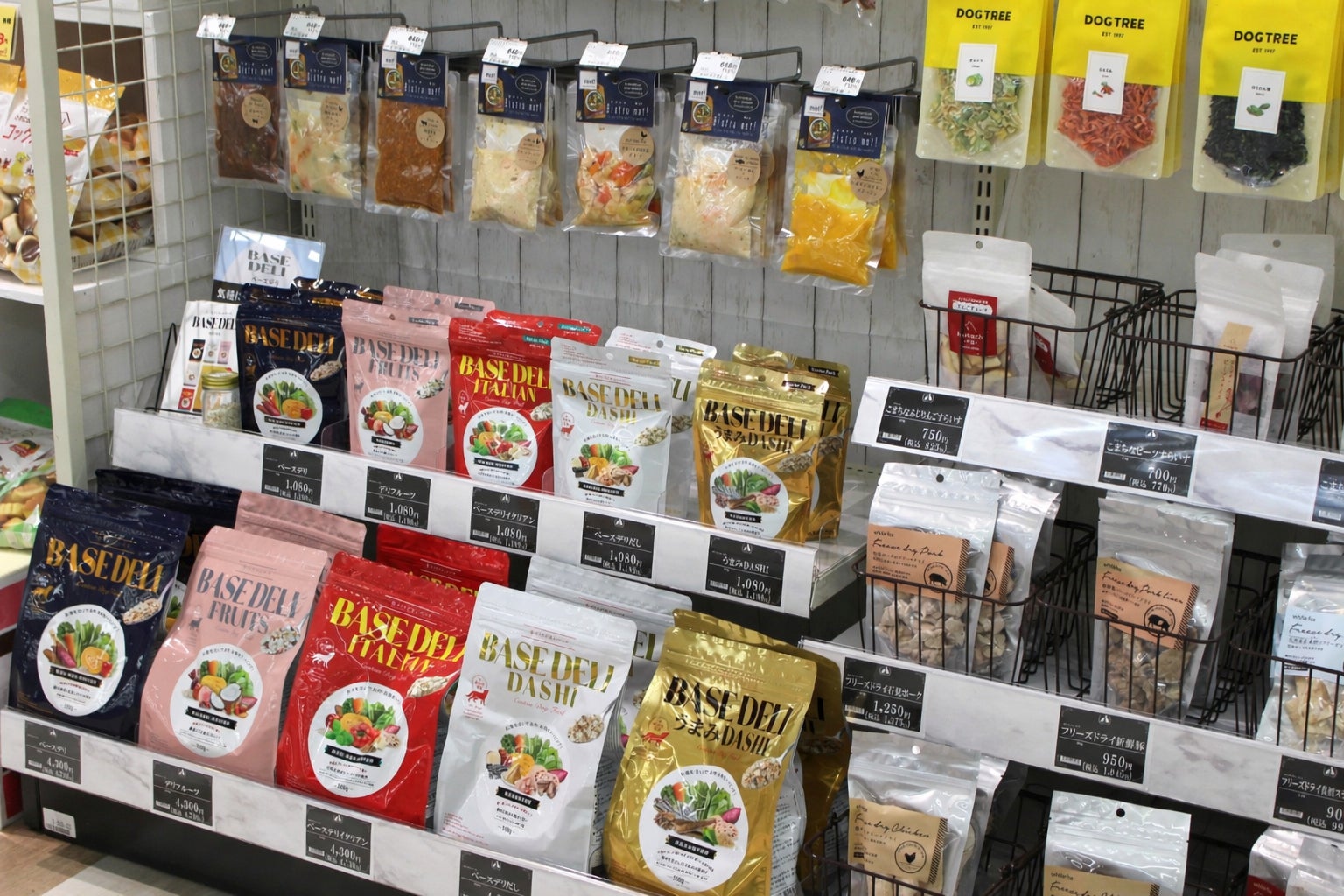 犬猫の種類や年齢、健康状態に合わせた毎日の食事から、安心の無添加おやつ、特別な日のためのスイーツまで幅広く取り揃えます。一例として、ペット用冷凍商材は品揃えを拡充し、100種類以上を展開いたします。また、獣医師監修のもと開発された、無添加・無着色・保存料不使用のフリーズドライ製法によるベースフード「BASE DELI(ベースデリ)」をはじめ、専門店ならではの高付加価値商品を豊富にラインナップいたします。