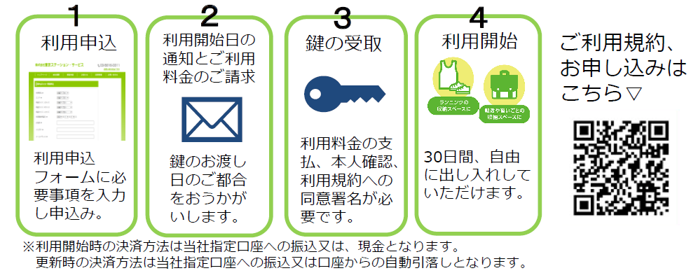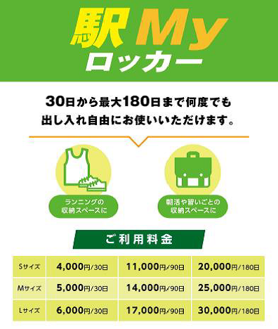 秋葉原駅・品川駅でのサービスインを記念して、7月8日から9月30日までの間にご契約の方に限り、S・M・Lの全サイズでプラス30日間無料キャンペーンを実施いたします。対象駅:秋葉原駅・品川駅・東京駅