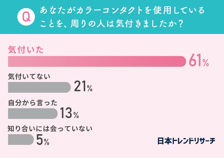 周りの人はカラコンに気付いていたかという質問では、21%の方は「気付いてもらえなかった」と回答しました。