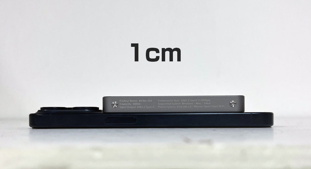 当製品は、USB3.2規格において最高クラスの転送スピード「USB3.2 Gen2×2」を実現した超高速のポータブルSSDです。iPhone15のUSB-CポートとMagSafe吸着に対応し、高品質なProRes動画を直接記録することができます。そのほかスマートフォンのバックアップや容量の大きいファイルの管理など様々な利用が可能です。512GBと1TBの2モデル展開です。