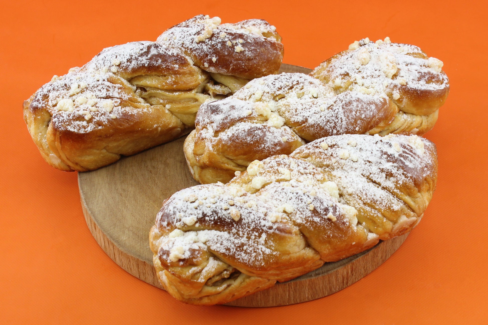 クインビーガーデン社のメープルシロップを使用したメープルクリームを折り込んだ菓子パン生地を、くるみと一緒に編み上げたスティックパンです。メープルシロップの芳醇な甘さに、くるみのカリっとした食感がよく合う一品です。