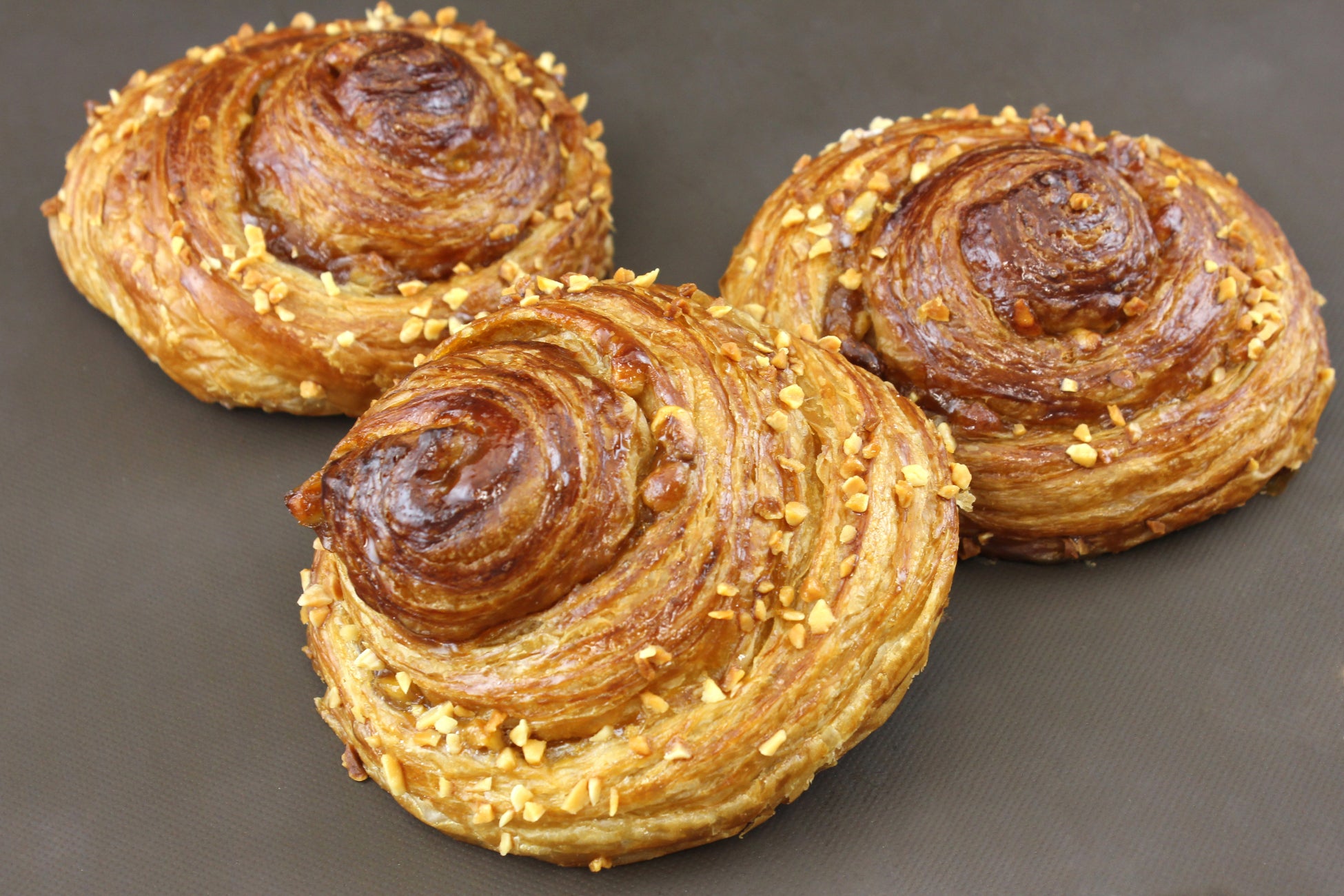 キャラメルのデニッシュ生地にキャラメル風味クリームとクルミを巻き込み、さっくりと焼き上げました。キャラメル×クルミ×アーモンドは最高の組み合わせ!ほろ苦い甘さと香ばしい風味が、秋を感じさせる一品です。