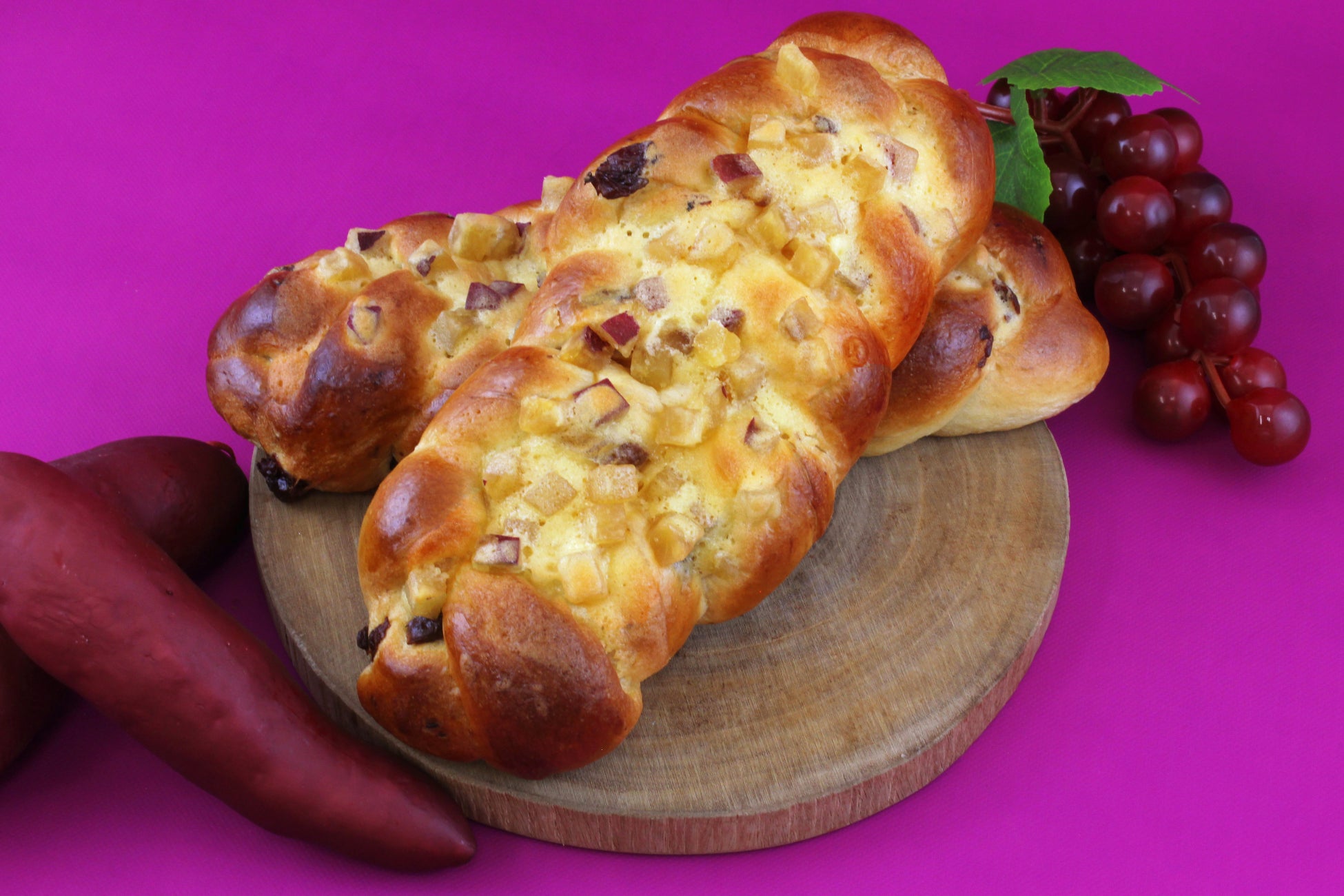 レーズンが入った生地に、紅はるかダイスとクッキー生地をトッピングして焼き上げました。紅はるかのほっくりとした優しい甘味を、レーズンが引き立てます。