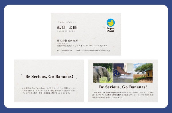 SDGs17項目すべてに関わる用紙・バナナペーパーの更なる使用拡大を目指し、バナナペーパーの名刺を無償で作るプロジェクトです。