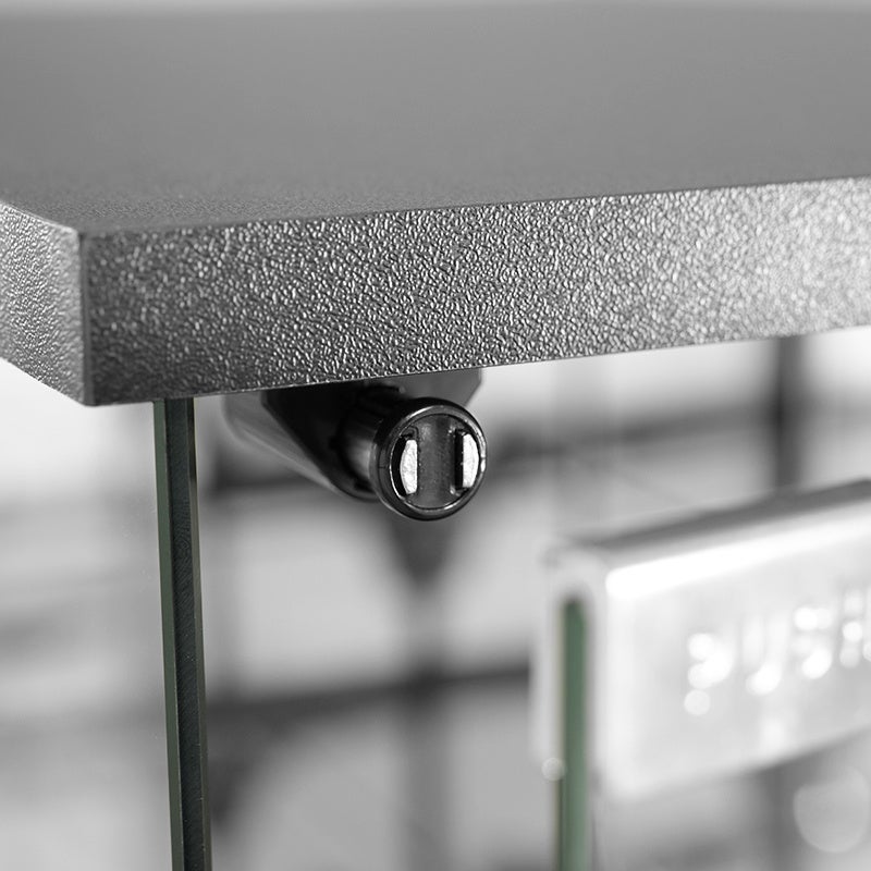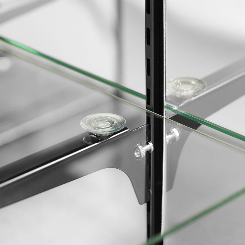 ガラス棚板を固定する吸盤。しっかり吸着することでガラス棚板がずれることを防止。