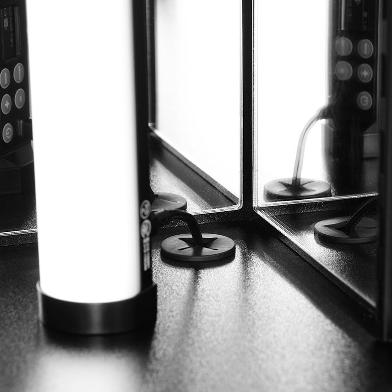 ディスプレイ部分にはガラス製の専用スペースを設けました。手前側に柱を設けない「ピラーレス設計」を採用し、ガラス越しでもフィギュアを余すことなく楽しめます。さらに、奥側にL字型に配置されたミラーが作品の背面まで映し出します。フィギュアを取り出さなくても、後ろ姿を手軽に干渉できる環境が作り出せます。また、室内の光を反射する効果で、暗くなりがちなケース内を明るく照らし出します。コレクションの魅力を最大限引き出す仕様にこだわりました。