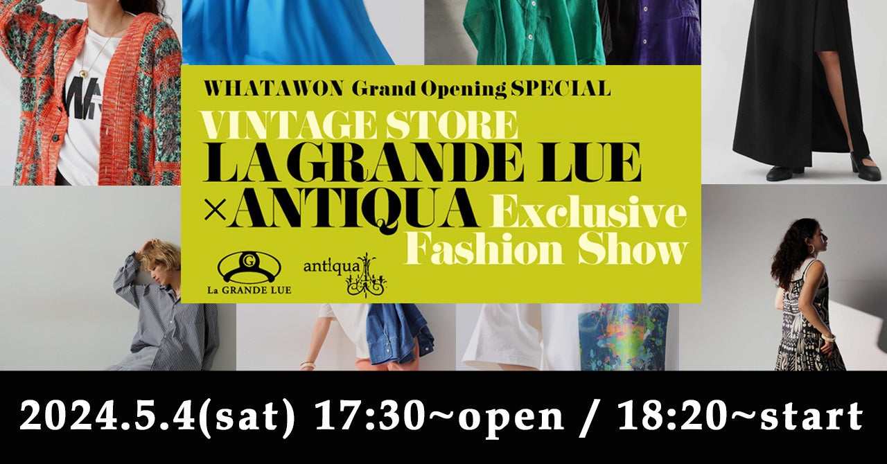 絶対見逃せない、LaGRANDELUE x antiquaの超豪華ファッションショー。5月4日、WHATAWONで開催。