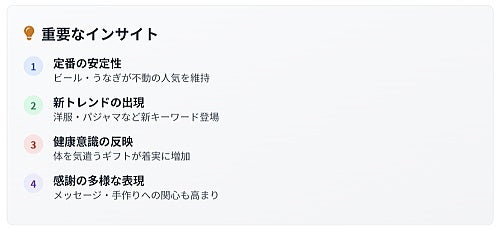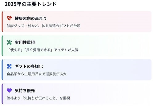 定番に加えて「気持ちが伝わる実用性」と「健康への配慮」が鍵