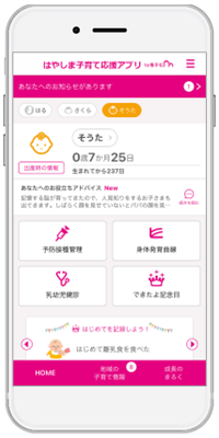 早島町に採用された『はやしま子育て応援アプリ』は、スマートフォン・タブレット端末・PCに対応したサービスで、妊産婦と子どもの健康データの記録・管理や予防接種のスケジュール管理、出産・育児に関するアドバイスの提供、離れた地域に住む祖父母など家族との共有機能や、町が配信する地域の情報をお知らせするなど、育児や仕事に忙しい母親や父親を助けてくれる便利な機能が充実しています。