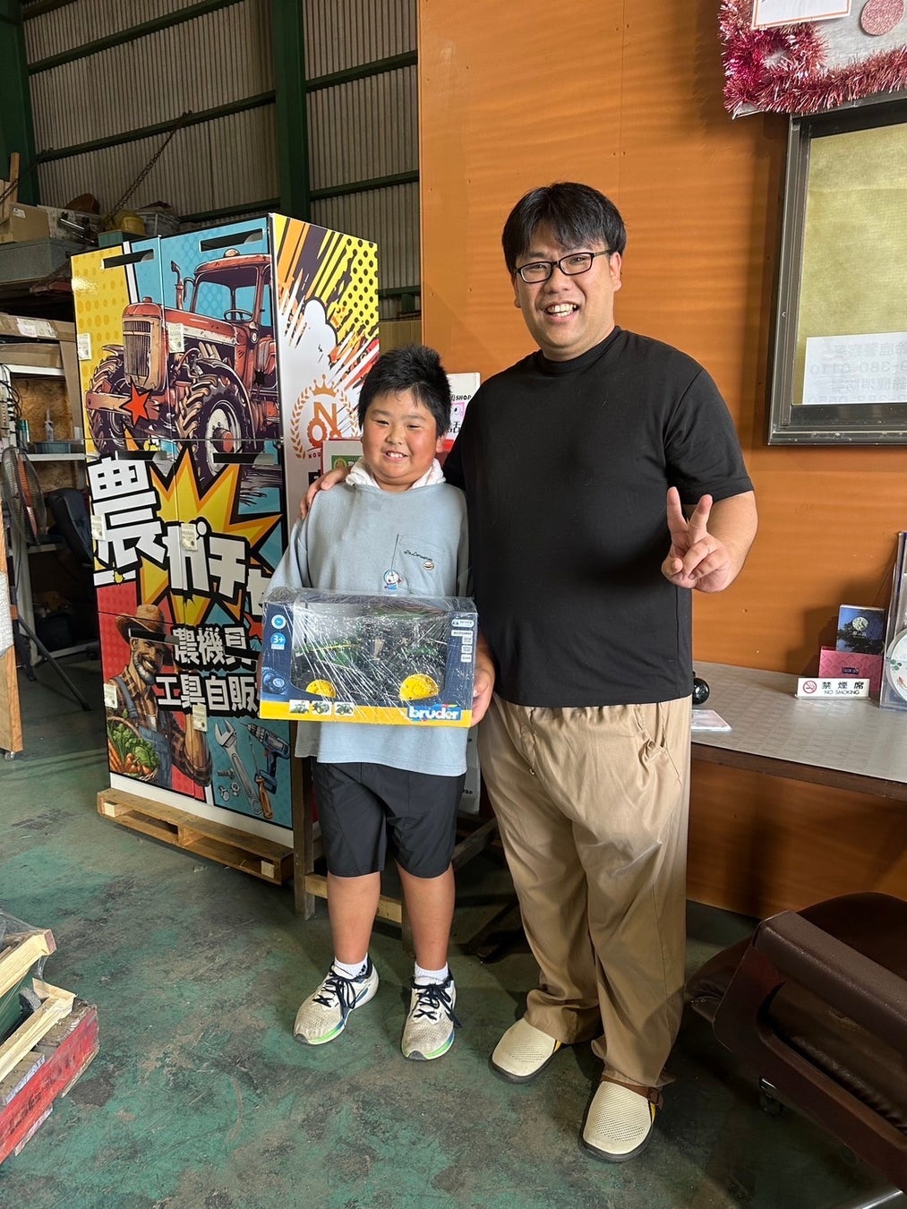 小学生の息子さんが、自分のお小遣いで4回チャレンジし、見事3回目にして“ジョンディアのミニカー”を手に入れました。ご家族は現在もお米作りに従事されており、息子さんは幼い頃から農業機械が大好きとのこと。農ガチャのミニカーを手にしたときの笑顔に、スタッフ一同も感動し、「これは将来の農業界を支える存在になる…」と感じるほどの心温まる出来事でした。