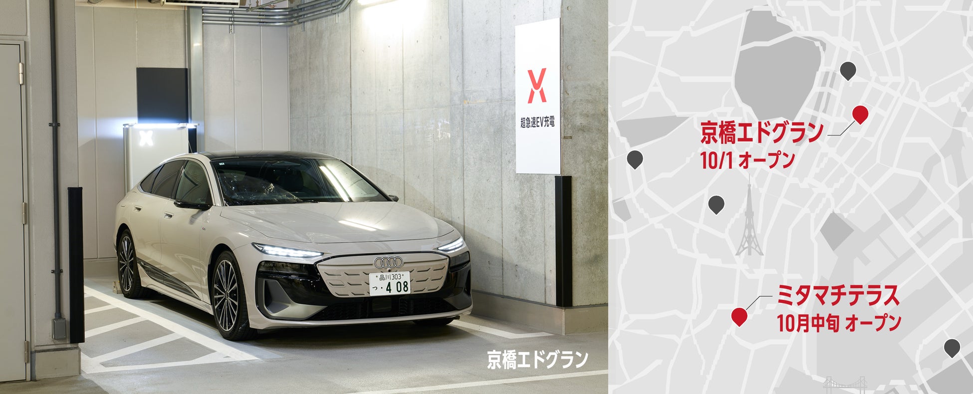 株式会社パワーエックス(本社:東京都港区、取締役 代表執行役社長 CEO:伊藤 正裕)は、新たに「京橋エドグラン」(東京都中央区)と「ミタマチテラス」(東京都港区)にてEVチャージステーションを開設します。両施設では最大150kWの超急速充電を提供し、都心部における充電サービスをさらに強化します。