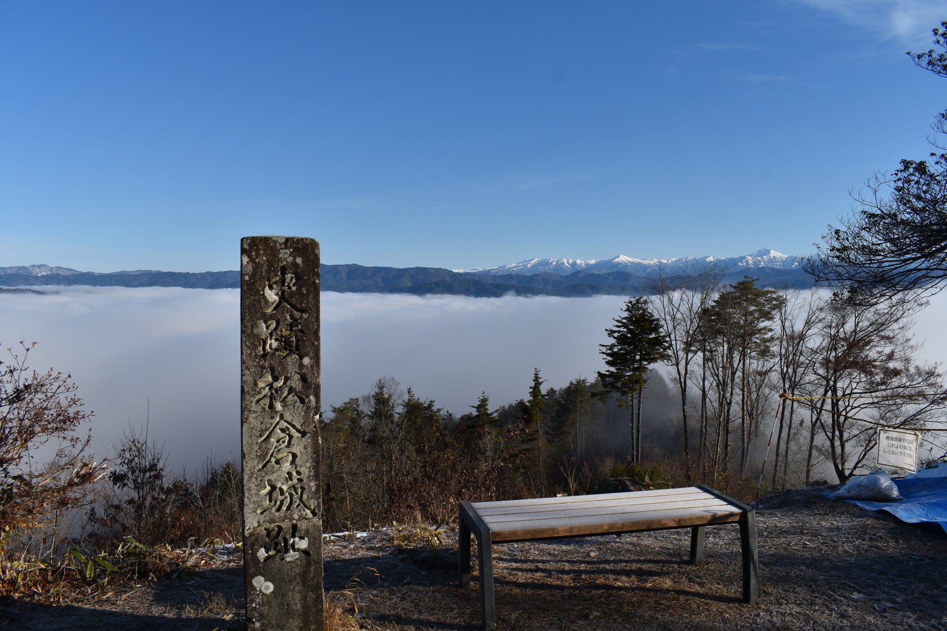 松倉城跡は、16世紀後半に高山盆地に進出した飛騨地方南部の領主三木氏の拠点で、標高856.7メートルの松倉山山頂に築かれた山城跡です。尾根筋に堀切や曲輪を設け、山頂部には石垣で囲まれた本丸、二ノ丸、三ノ丸があります。