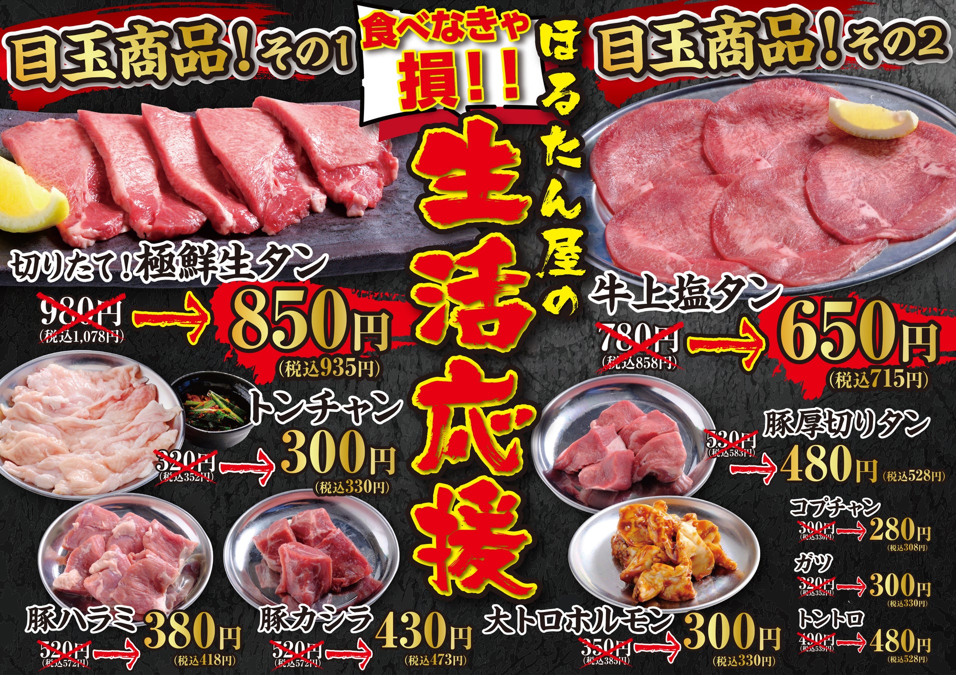 自慢のお肉をどこよりお値打ちに出したいという想いから今回の生活応援フェアを開催することにしました!この機会にぜひほるたん屋で上質な焼肉をカジュアルにお楽しみください!