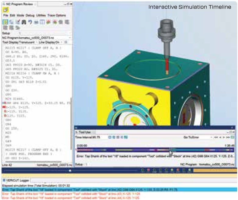 新機能の「ポストチェック」は、CNCからアーカイブされたデータをVericutシミュレーション内で確認できる調査ツールで、CNCマシンの動作状況を観察し、特定の部品加工中に発生した問題を検査・診断できます。