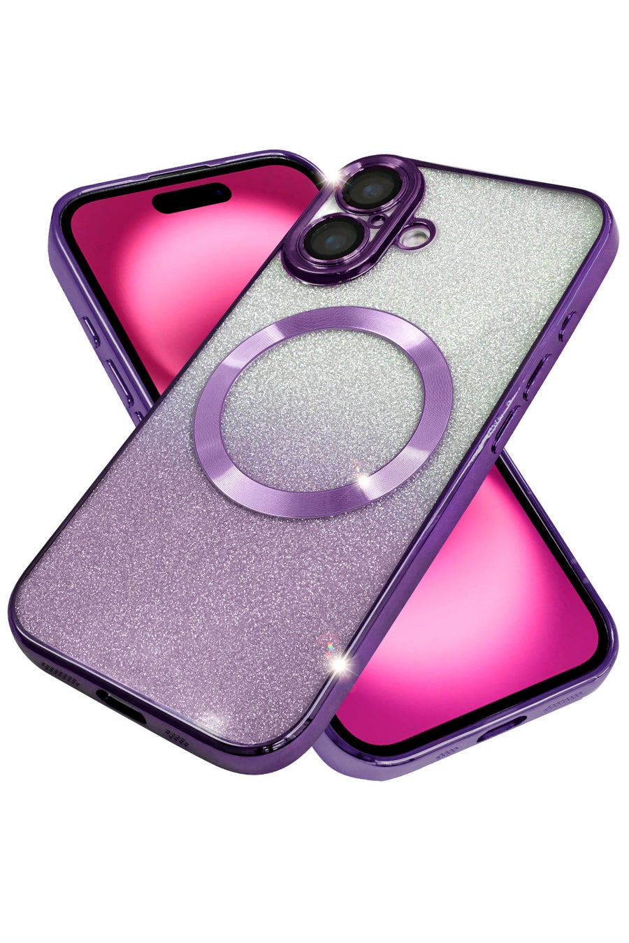 ラメが手元を彩るスマホケース。シートを入れて華やかに、外してシンプルに、2WAY仕様でスタイル自由自在。MagSafe対応で快適なワイヤレス充電を実現!