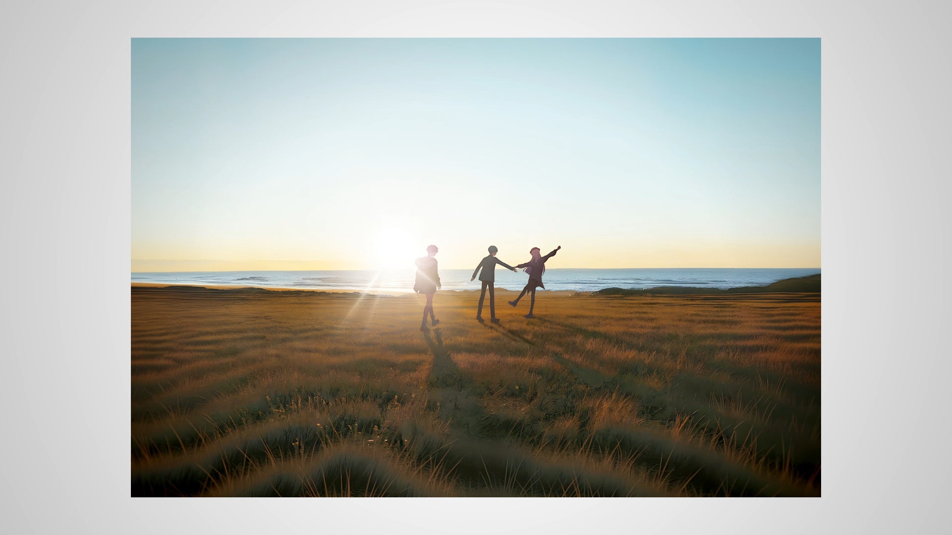 3次元の実写的表現と2次元のCGキャラクターをAIにより融合し、新たな表現として「2.5次元キャラクターイラスト」を実現。「ポラポリポスポ」のキャラクターである「WAKAZO」の3人が、自然豊かな街を車で旅する様子を描いています。