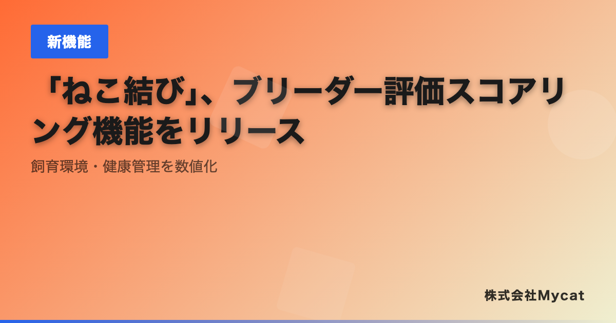 株式会社Mycat(本社:東京都目黒区)は、AI猫ブリーダーマッチングサービス「ねこ結び」(https://nekomusubi.xyz)において、ブリーダー評価スコアリング機能をリリースしたことをお知らせいたします。