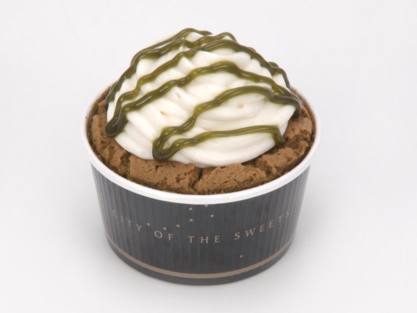 抹茶の風味、チーズ、小倉餡をあわせた新しい味わいのスイーツです。宇治抹茶パウダー入りの生地をふんわりと焼き上げ、生地の中に苦味の効いた宇治抹茶パウダー入り抹茶クリームを絞りました。抹茶クリームの上に小倉餡、さらにオーストラリア産のクリームチーズが入ったクリームチーズを絞り、抹茶ソースをかけました。