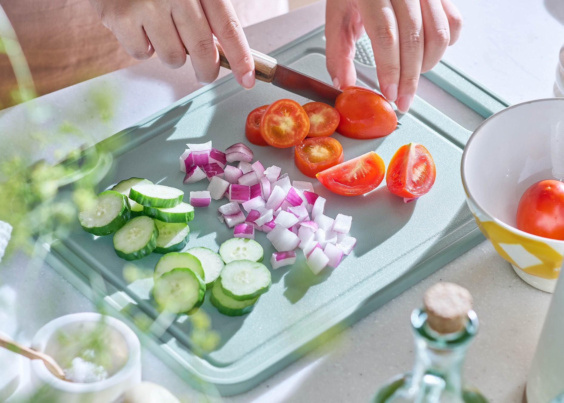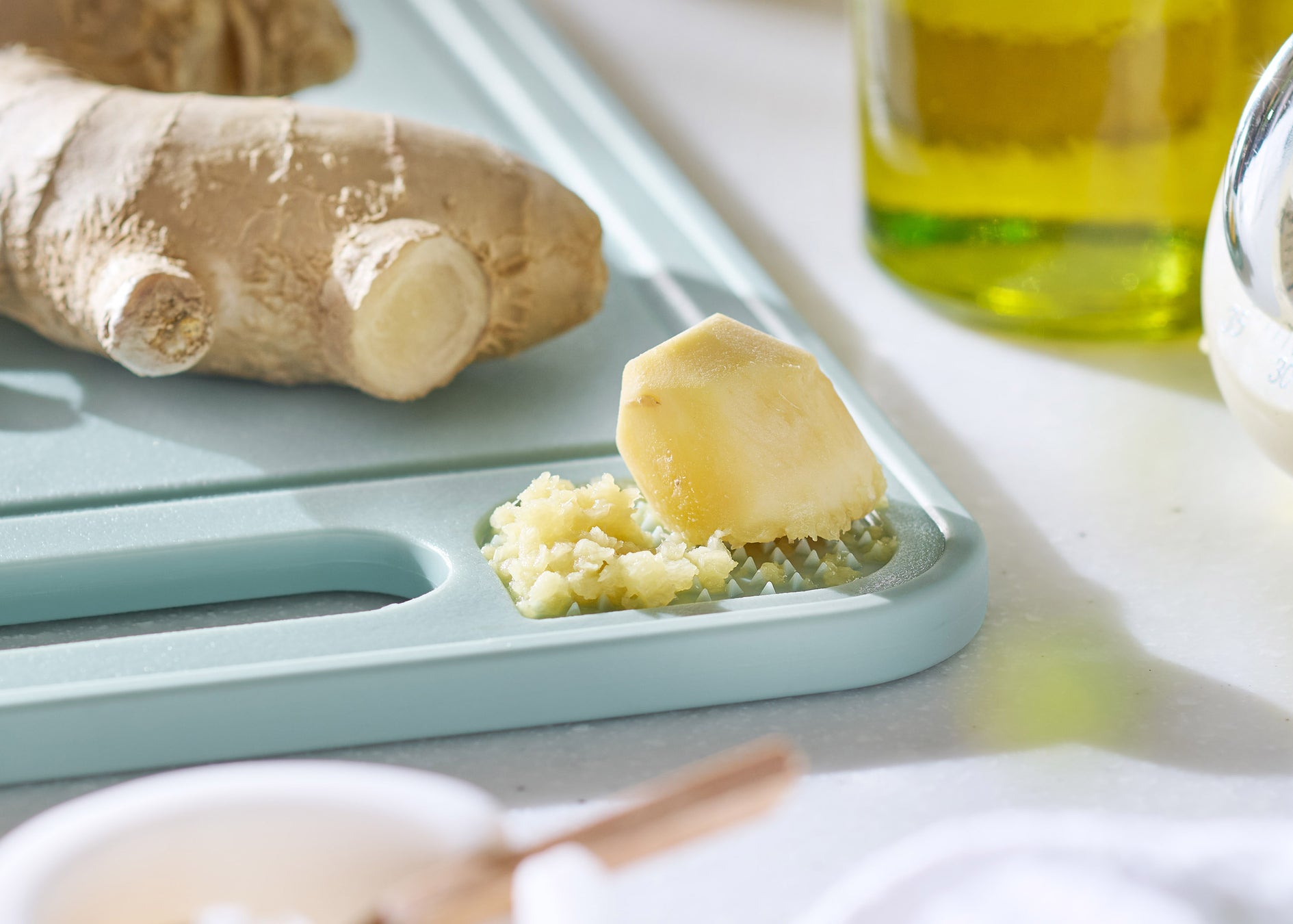 まな板面は、抗菌仕様で清潔。薬味おろしも付いているため、わざわざおろし金を出す手間も省け、洗い物も増えず、便利にお使いいただけます。