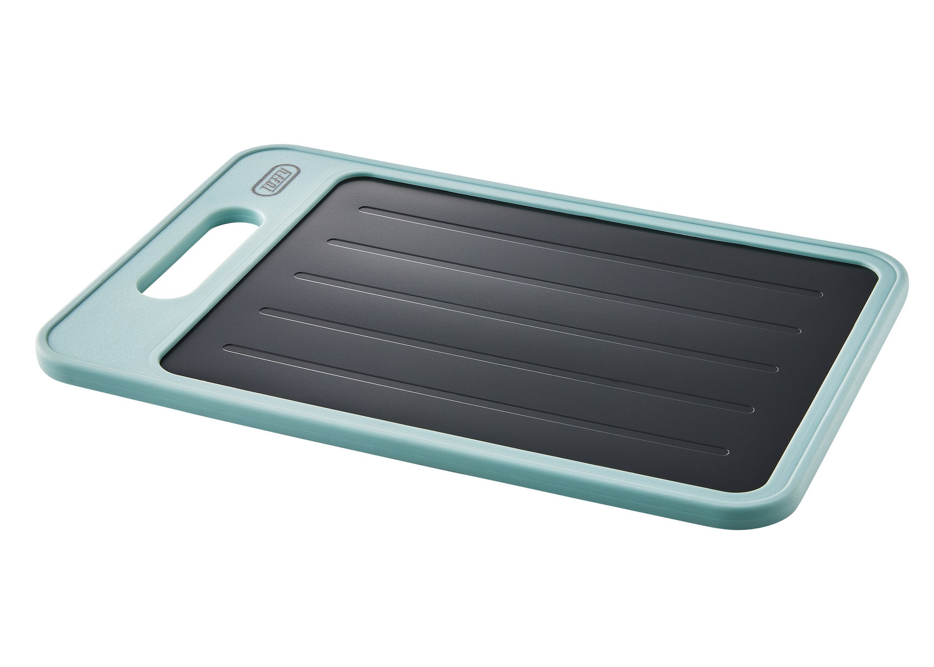 「Toffy 解凍プレート付きカッティングボード」は「解凍プレート」と「まな板」が一体になった、2WAY仕様のカッティングボードです。冷凍食材の解凍だけでなく、食材のカットも可能な1枚2役。まな板面は抗菌仕様で、薬味おろしも付いています。少量だけ薬味をおろしたいときに便利です。カラーは「ペールアクア」の1色展開。