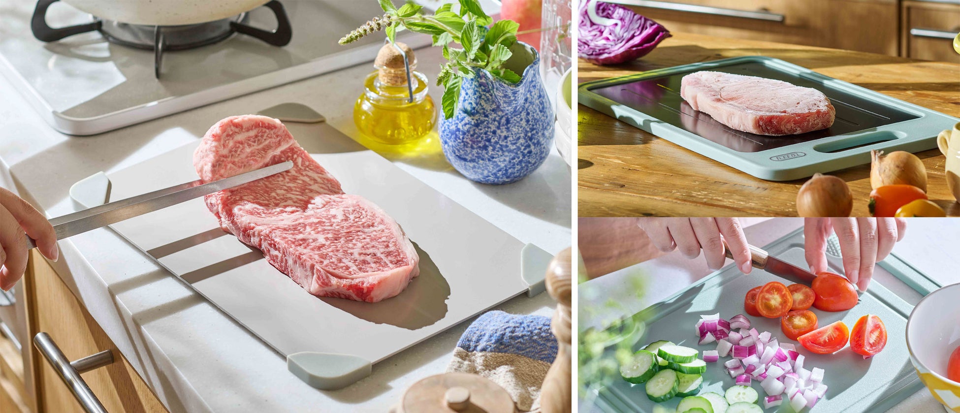 冷凍食材をのせるだけ!自然解凍の約2倍※のスピードで急速解凍ができる「Toffy 解凍プレート」「Toffy 解凍プレート付きカッティングボード」発売