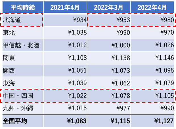 全国平均時給は、前年同月比、前月比でともに増加しています。