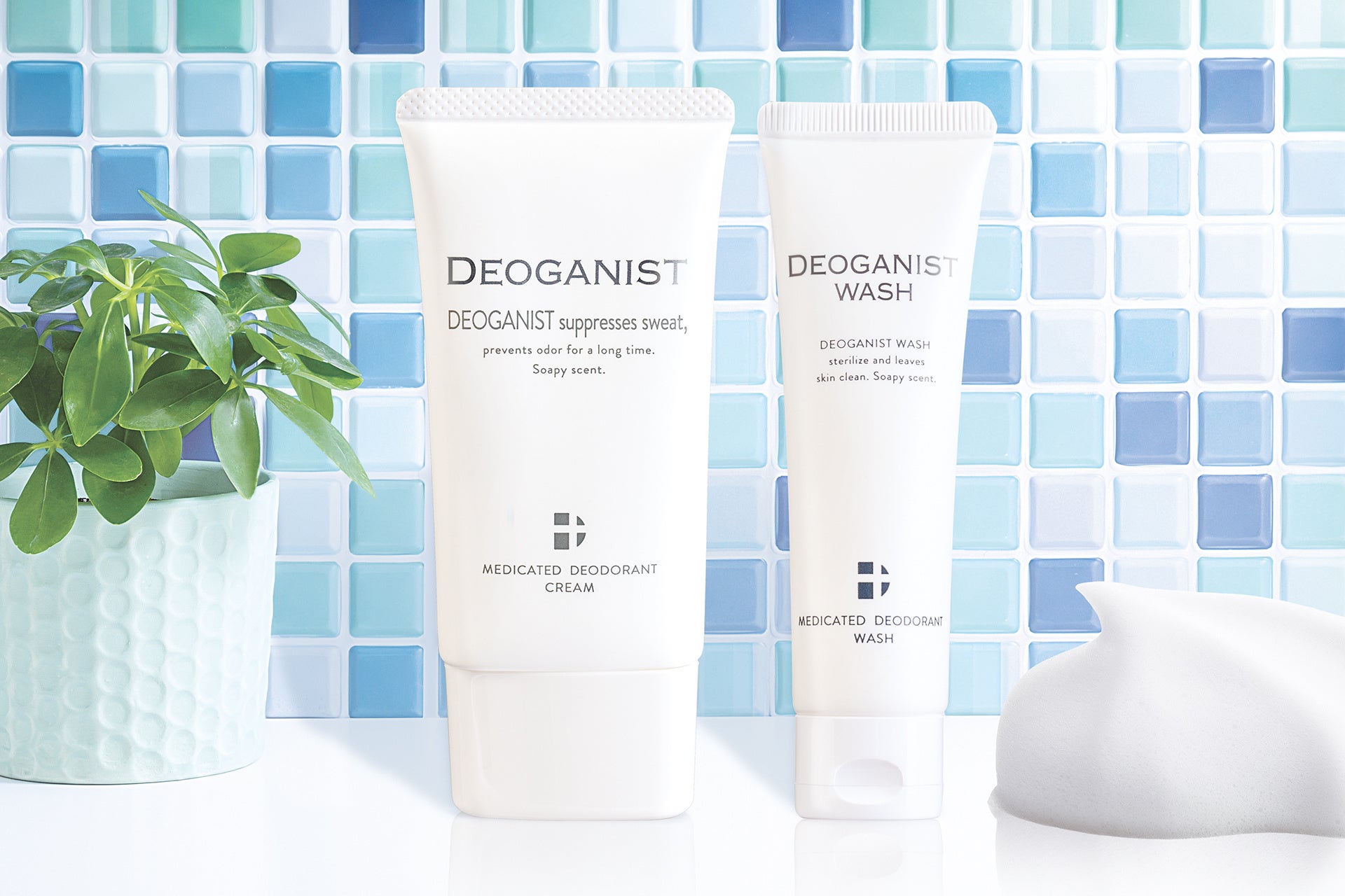 殺菌でワキのニオイを防ぐ「薬用せっけん・デオガニストウォッシュ」と、殺菌と制汗成分でニオイの発生を抑える「薬用制汗剤・デオガニスト」のシリーズ使いで、より徹底したワキ対策ができます。