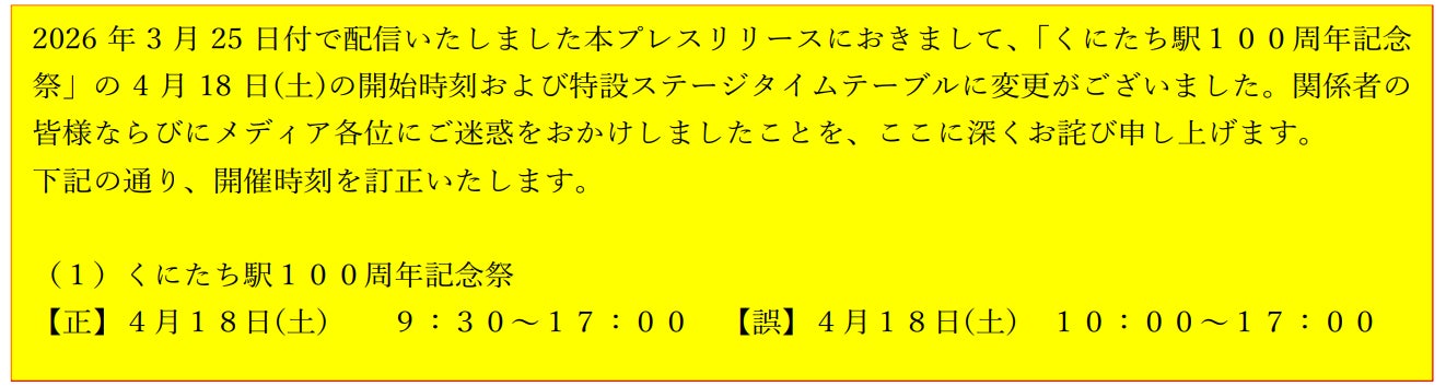 国立駅開業100周年!100年の感謝を込めて記念イベントを開催します(イベント開始時刻に変更があります)