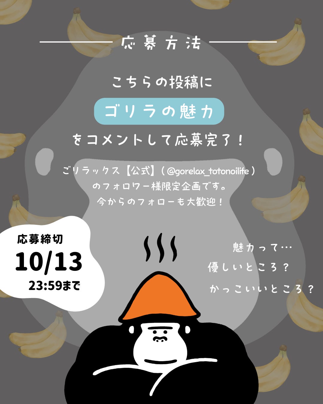 ごリラックスの公式アカウントをフォロー&コメント