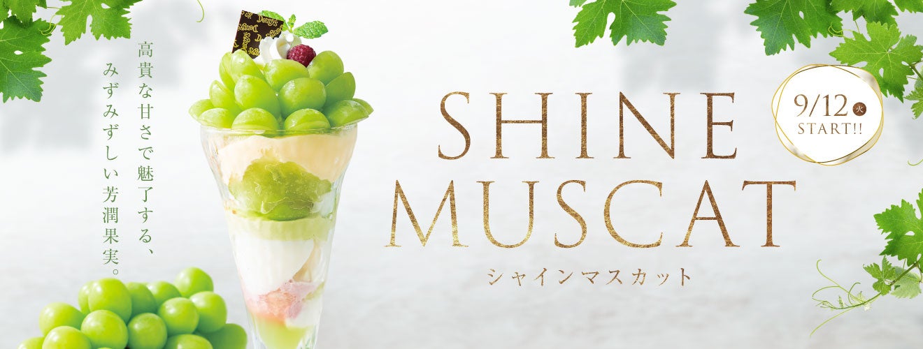 サンデーは、シャインマスカットを10粒贅沢に使用し、マスカットクリームやマスカットソースなど、どこから食べても最後まで白ぶどうの爽やかな風味につつまれます。また、白ぶどうゼリーやマスカットクリームなどミニサイズでも白ぶどうを存分に味わえるパルフェや、ちょこっとパルフェなどは、食後のデザートにもおすすめです。さらに、シャインマスカットをデコレーションしたしっとりなめらかな口当たりのチーズケーキや、シャインマスカットをそのまま味わうことのできる商品など全5品をご用意しました。