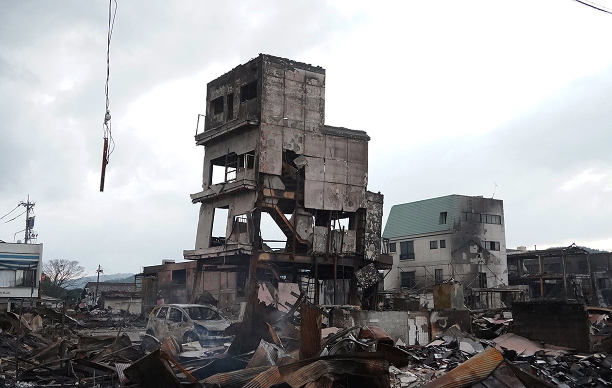 廃墟と化した石川県輪島市の朝市通り一帯=2024年1月5日