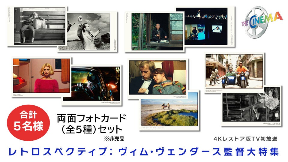 合わせてヴィム・ヴェンダース監督作両面フォトカード(全5種セット)が5名様に当たる、プレゼント企画を実施いたします。