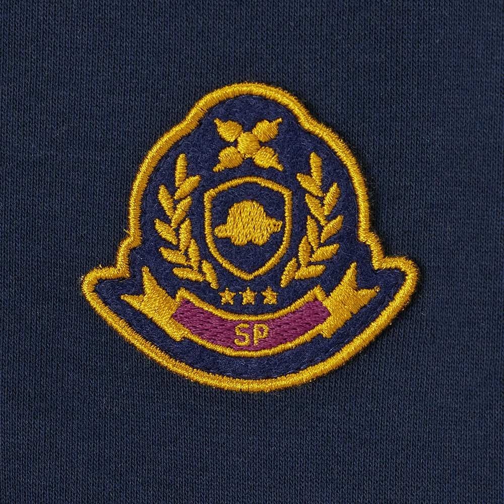 カレッジテイストのレイヤード風プルオーバーです。ポケットの中には食・芸術・音楽を楽しむ“ぷしゅぷしゅ”の刺繍が施されています。