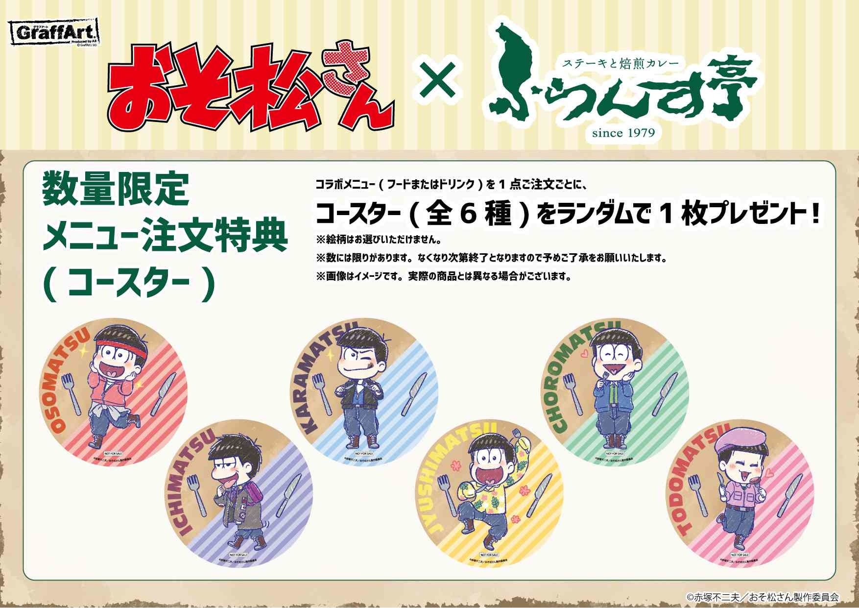『おそ松さん』と『ふらんす亭』のコラボメニューをご注文いただいた方には、注文特典としてコースターをプレゼント!