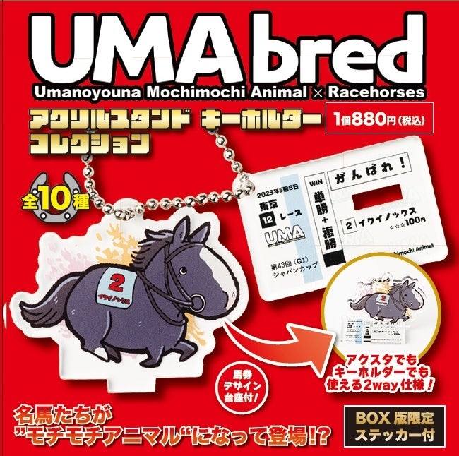 実在の競走馬たちが、人気イラストレーター鷹月ナトが描く「ウマのようなモチモチアニマル=UMA」になっちゃった?「UMAbred アクリルスタンド&キーホルダー」のBOXトイ リリースが決定!