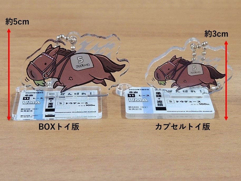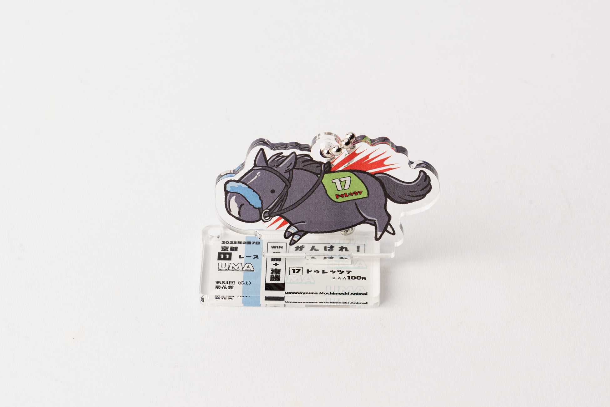 UMA本体のイラストと別に「馬券風デザイン」のアクリルも付属。