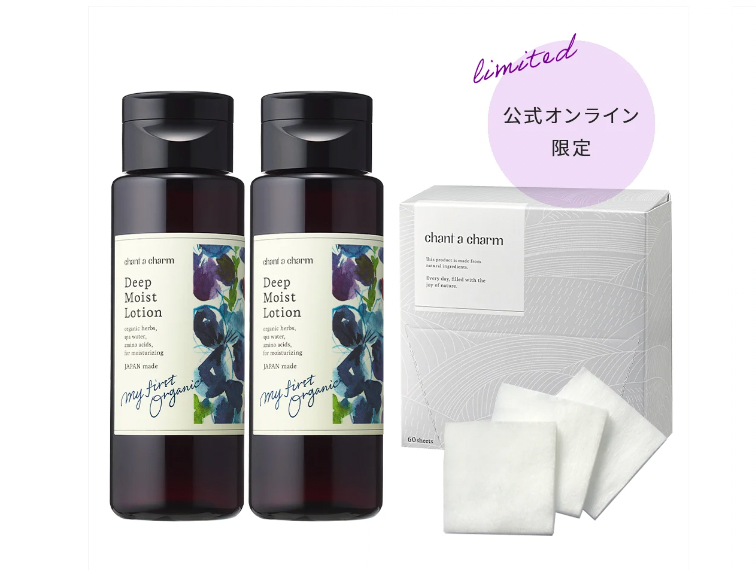 オーガニックスキンケアブランド・チャントアチャームより、 秋冬の乾燥シーズンを乗り切る「 ディープ モイスト ローションEX オーガニックコットンセット」が数量限定で発売中。